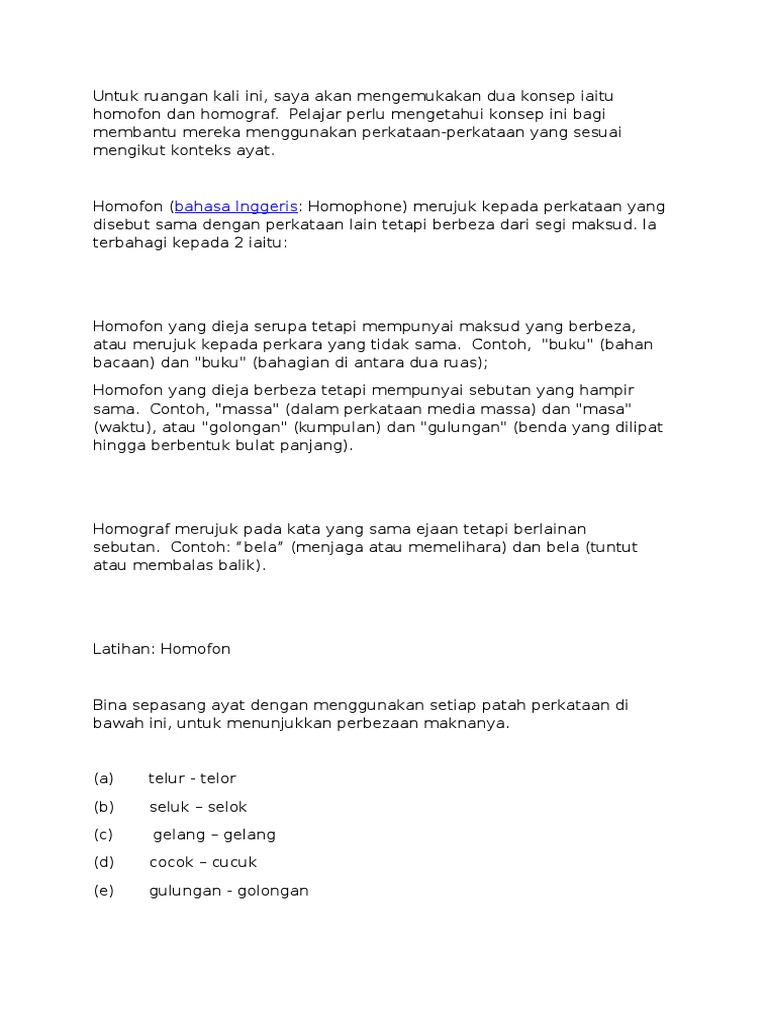 Contoh Perkataan Homogrof Bahasa Melayu Jaspermcynewton